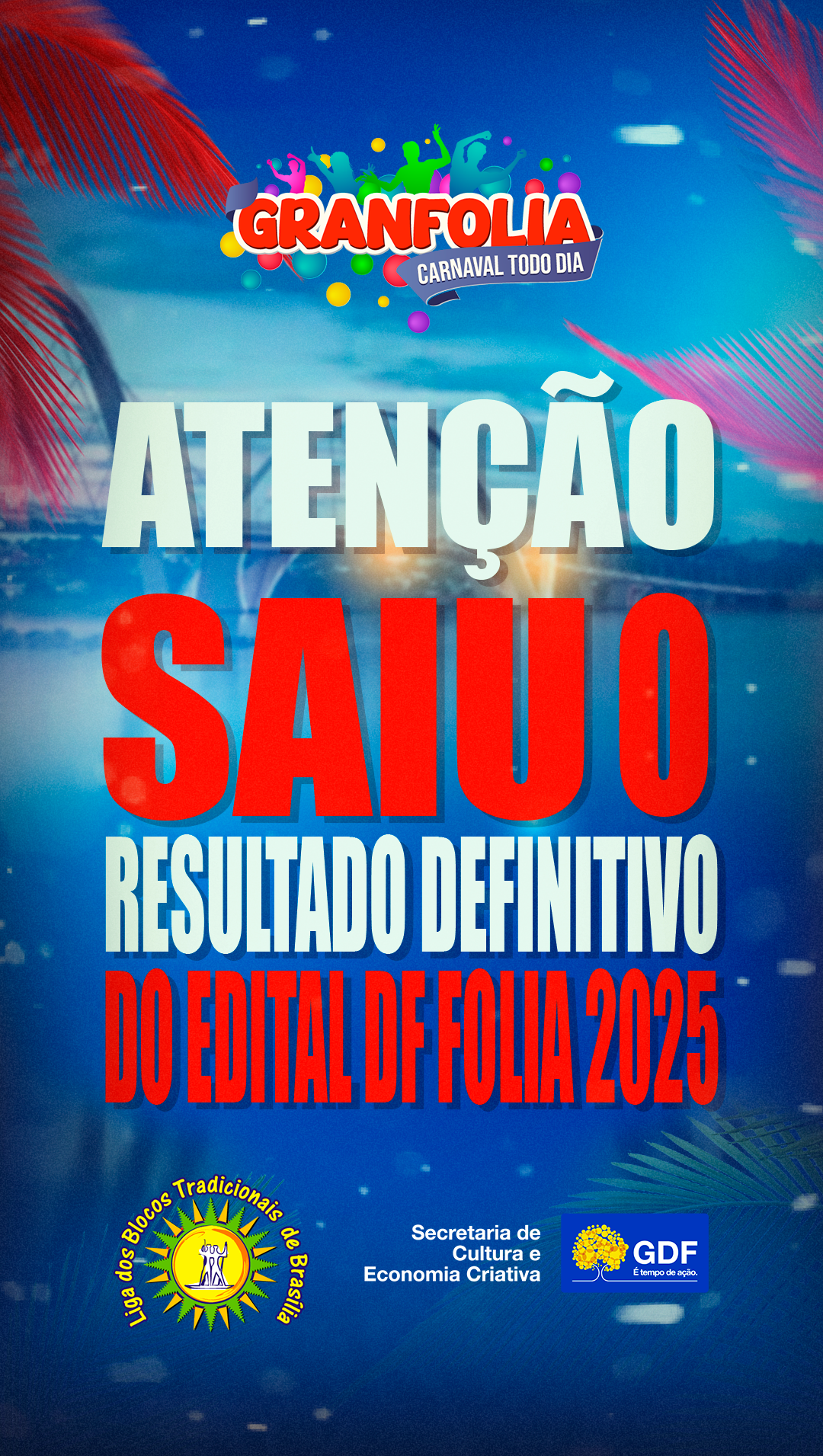 Saiu o resultado final do Edital nº 58/2024! A Secretaria de Cultura e Economia Criativa do DF selecionou o projeto que vai agitar o nosso